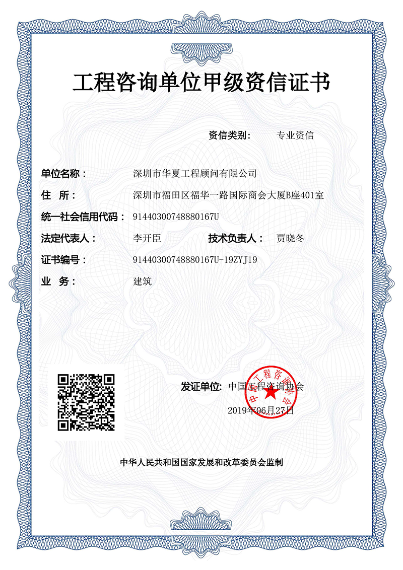 工程咨詢單位甲級(jí)資信證書(shū)