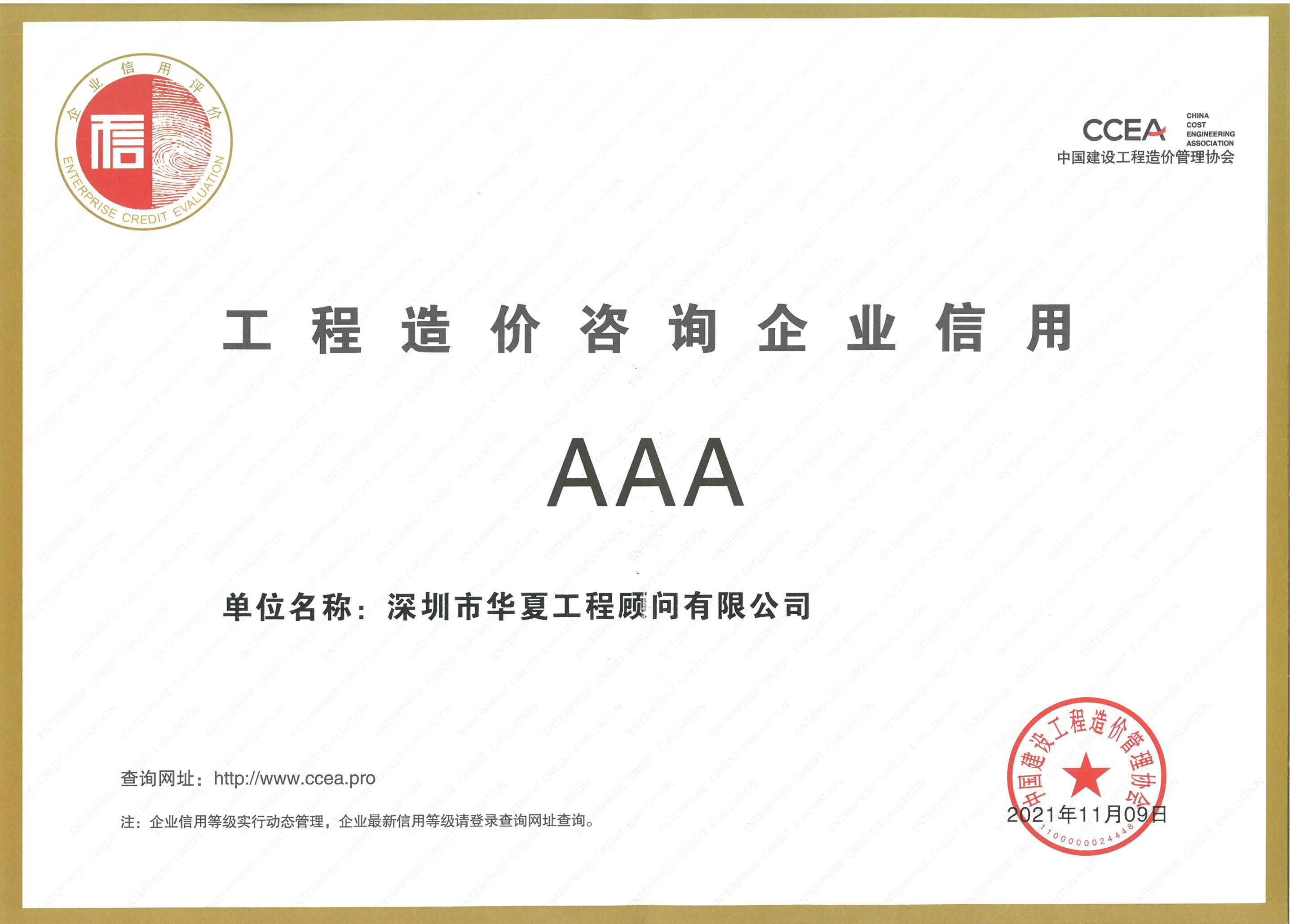 工程造價(jià)咨詢企業(yè)信用AAA