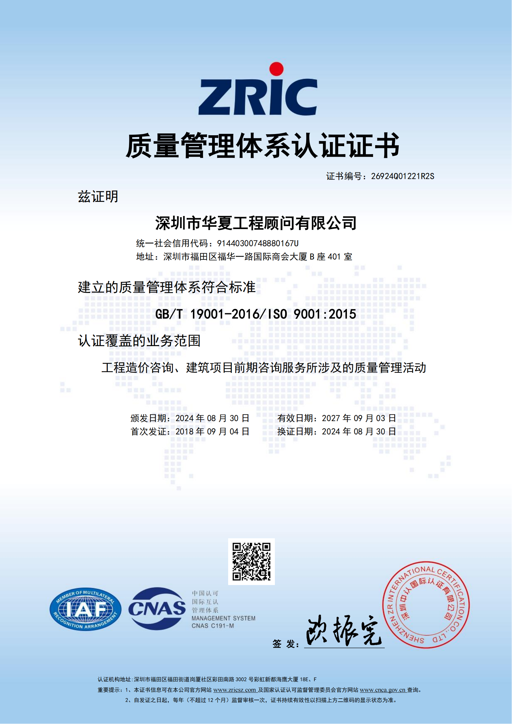 質(zhì)量管理體系認(rèn)證證書(shū)
