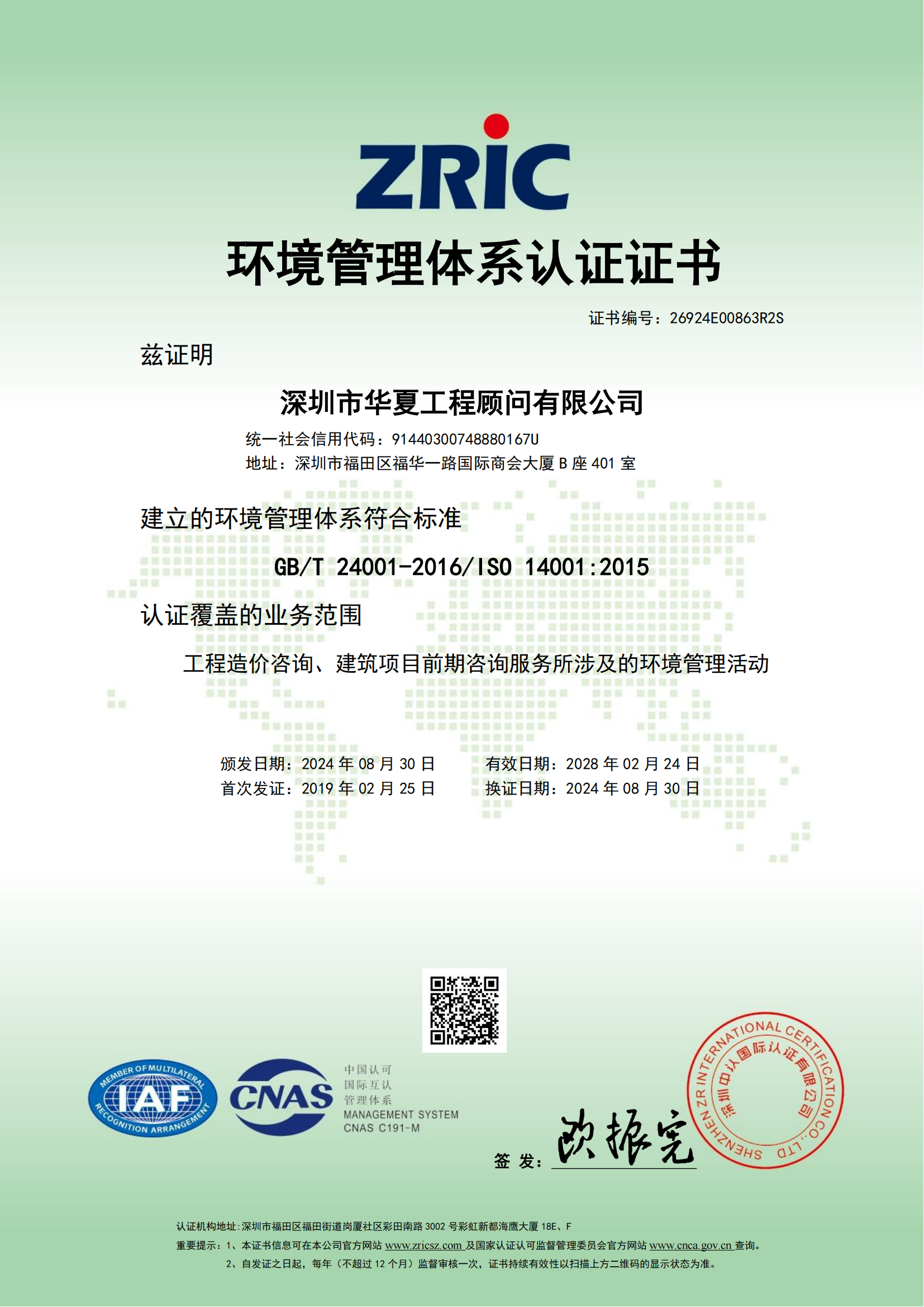 環(huán)境管理體系認(rèn)證證書(shū)