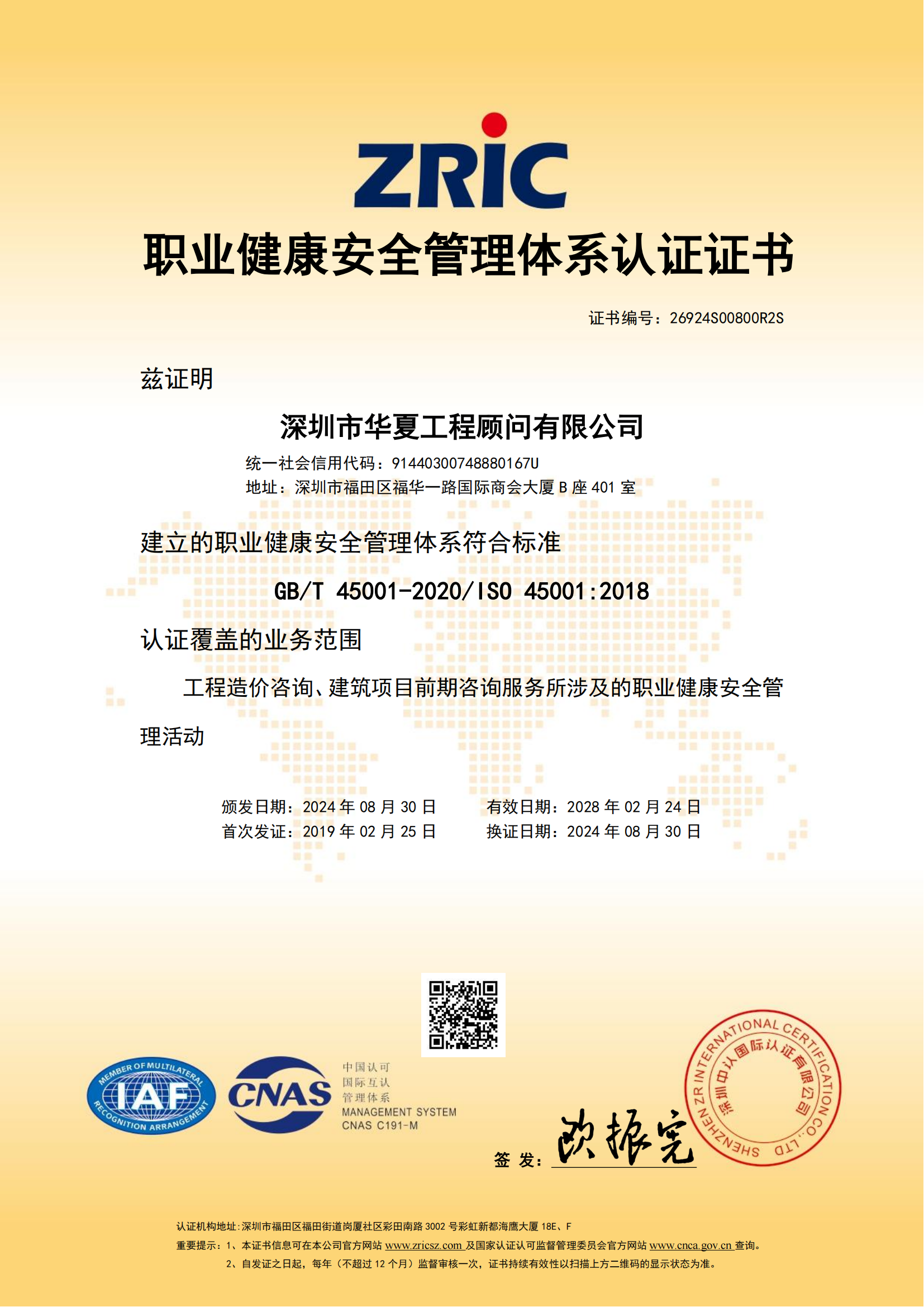 職業(yè)健康安全管理體系認(rèn)證證書(shū)