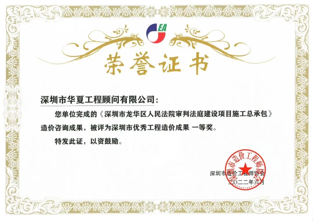 1.我司“深圳市龍華區(qū)人民法院審判法庭建設項目施工總承包”榮獲優(yōu)秀造價咨詢成果獎一等獎