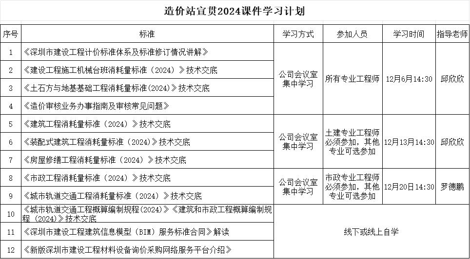 在工程造價領(lǐng)域,政策的每一次更新都如同行業(yè)發(fā)展的風向標,指引著從業(yè)者前行的方向。為了幫助我們的員工更好地理解和應用最新的建設(shè)工程造價相關(guān)政策,助力公司團隊專業(yè)素養(yǎng)提升,我司根據(jù)深圳市造價管理站發(fā)布的2024建設(shè)工程造價相關(guān)計價標準宣貫課件,組織了為期一個月、共計三場的專業(yè)培訓。