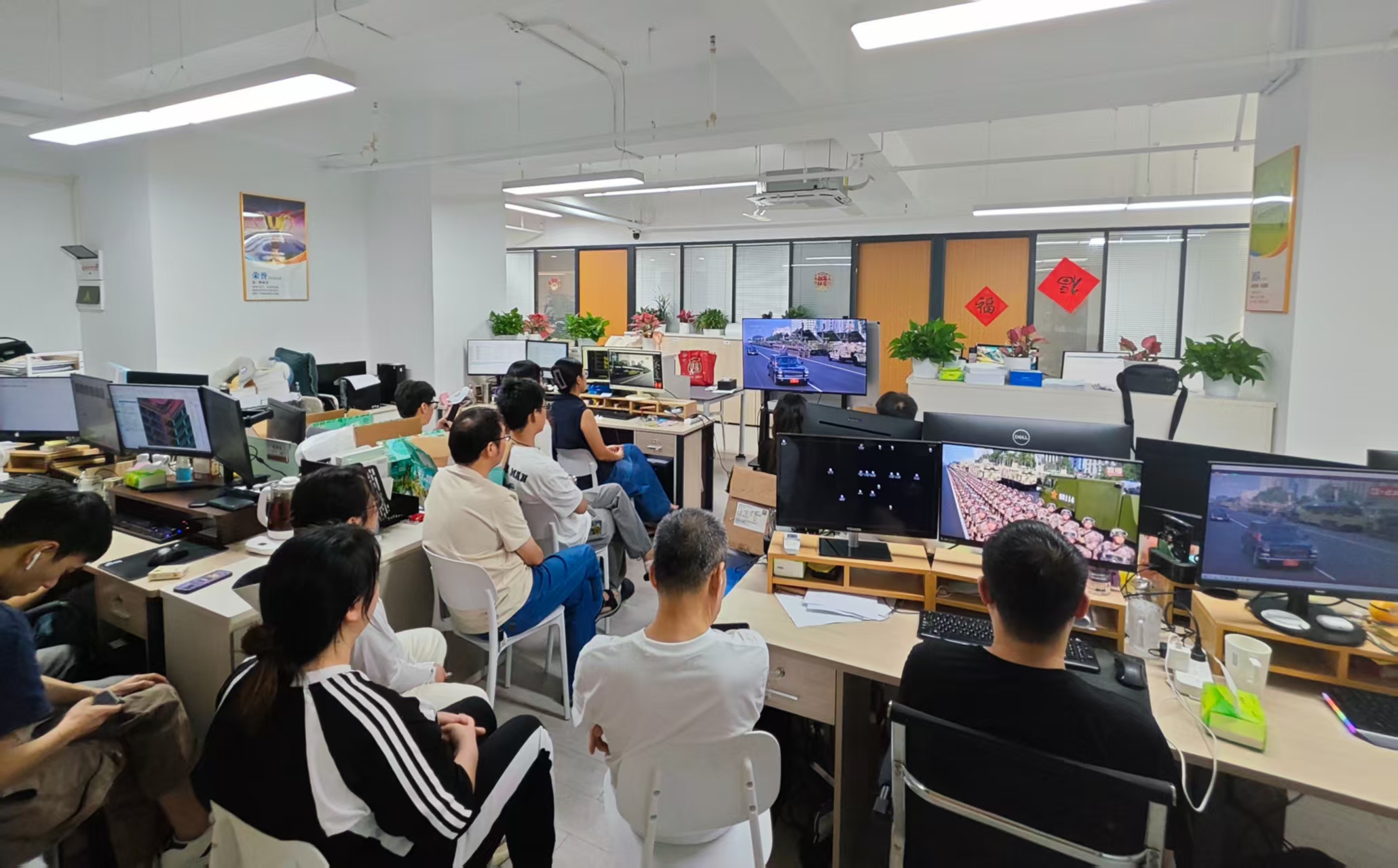 上午九點(diǎn)整,公司全體成員整齊端坐,懷著崇高的敬仰與熾熱的家國(guó)情懷,等待閱兵儀式的開始,等待這場(chǎng)承載著歷史與榮耀的國(guó)家盛典。