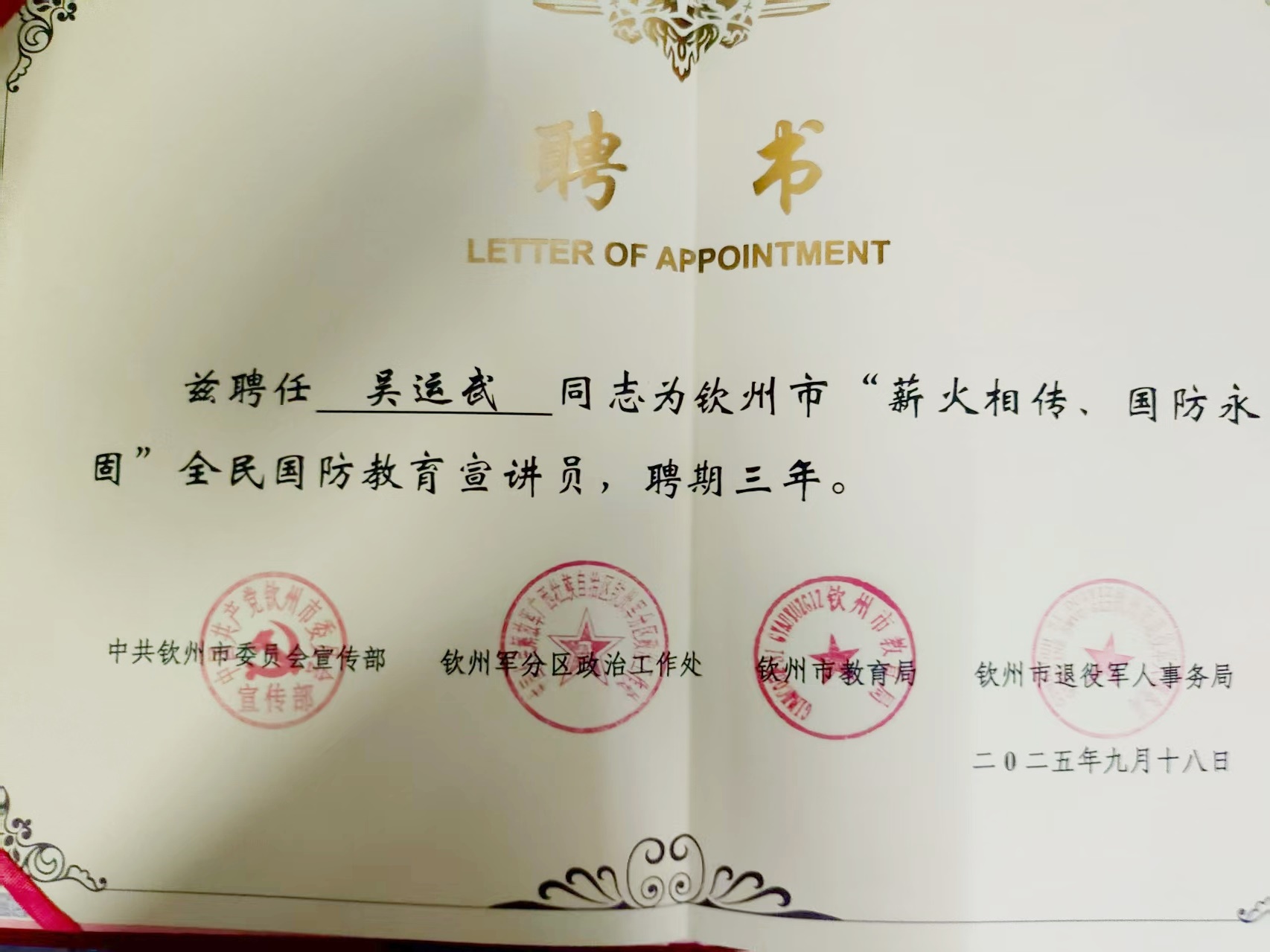 欽州薪火傳兵魄,華夏講壇弘稷魂。